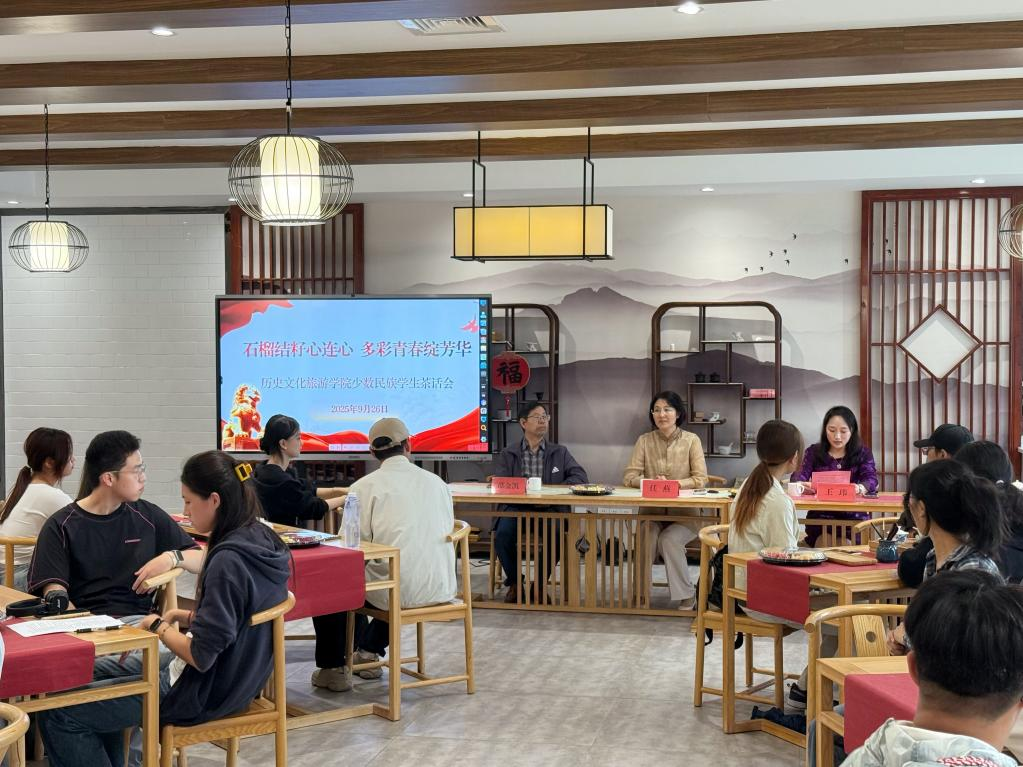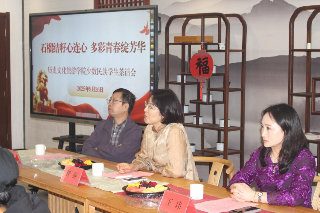 9月26日,历史文化旅游学院在弘文3-203教室举办2025级少数民族新生茶话会。本次活动以“石榴结籽心连心,多彩青春绽芳华” 为主题,校心理中心主任任燕、院党委副书记王玮、院关工委常务副主任邵金凯、学院辅导员,以及 2025 级全体少数民族新生、部分少数民族学生代表共同出席,在温馨互动中为新生搭建起融入校园、传承民族文化的交流平台。
