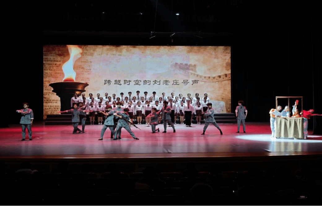 历史文化旅游学院选送的音诗画《跨越时空的刘老庄号声》凭借鲜明的主题、真挚的情感和扎实的演绎获得全场认可。该节目以音诗画为综合艺术载体,通过“合诵、情景剧、现代舞”三大板块有机融合,构建跨越时空的青春对话,展现从刘老庄连烽火到新时代强军的信仰传承。