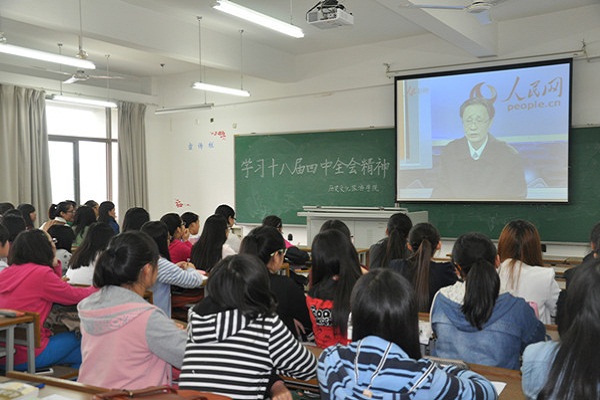 党的第十八届中央委员会第四次全体会议于10月20日在北京召开,本次大会将“依法治国”作为主题,绘制新路线图,为法治中国作顶层设计,将有力推进深化改革的步伐。 历史学院组织近70余名教师、学生共同收看了人民网独家视频《解读十八届四中全会》,为更好学习、贯彻十八届四中全会精神提前做好准备。2011级社会工作专业梁露同学说:“我关注十八届四中全会不仅是因为这次会议精神将极有可能作为时政试题出现在今年的研究生入学考试中,更重要的是作为应用型很强的专业,社会工作与法治的联系很紧密,了解法治中国,才能更好地将专业与社会管理结合,才能更好的发挥社工人的作用。” 学院师生将继续密切关注十八届四中全会,及时宣传、学习会议精神,让法治精神深入人心。 |