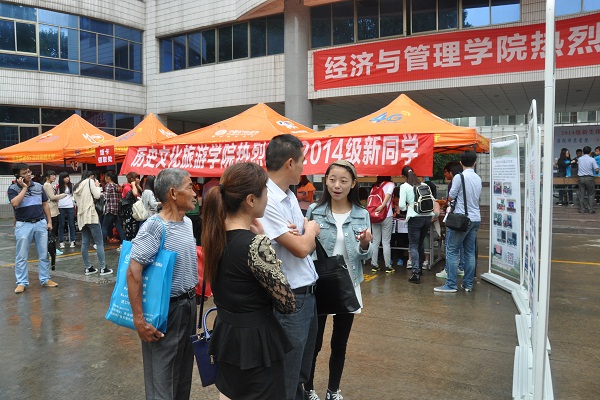 金秋九月,丹桂飘香。9月13日,历史学院迎来240余名2014级新生。现代科技与传统文化完美结合,让这一季的迎新工作锦上添花。 除了热情周到的服务和体贴入微的关怀,历史学院在迎新工作的方式上跟往年相比有了很大不同,既突出文科院系注重传统文化的优势,又凸显现代科技手段的灵活运用。校园春秋协会的同学们将汉服表演带到了迎新现场,让新同学真切感受丰富多彩的文化艺术活动,同时也向学生家长和其他同学传播了优秀传统文化。除了将传统文化淋漓尽致地展现,让新同学对学校以及学院有更加直观的了解之外,学院还将专业概况、教师简介、学生活动、社团风采以及班主任联系方式等以往用纸质媒体展现的信息浓缩到了一个小小的“二维码”中,新同学只要拿出手机轻轻一扫,所有新生须知便会全部展现眼前,既方便又环保,帮助他们更好的融入新环境。 新生的到来使学校和学院沸腾,他们的加入也为美丽的淮师校园注入了新鲜血液。传统与现代结合,周到与细致伴随,学院全体师生希望2014级新同学能继承和发扬淮师精神,勇于创新,在未来的大学生活中不断进取,大放异彩! |