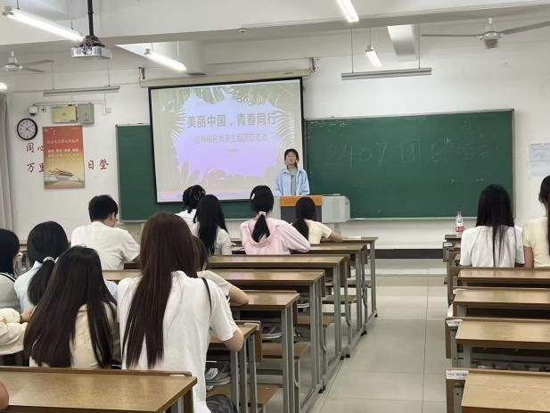 为响应国家建设美丽中国的号召,激发青年团员的环保意识和社会责任感,2025年5月30日,2407班全体团员组织开展了“美丽中国 青春同行”主题团日活动,用青春力量为美丽中国建设添砖加瓦。